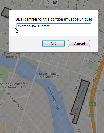 When you touch the line back to the starting point, a box will pop up and ask your what you want to name the polygon. This should be an identifier that matches up with the data you want to blend in later.
