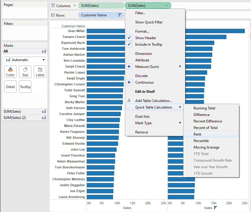 And of course you can filter down to a smaller number (by filtering on that same rank calculation or any other Top N calc).